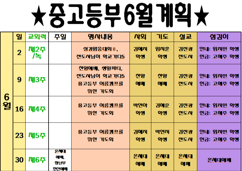 중고등부 예배는 주일 오후 2시, 2층 본당에서 드립니다.